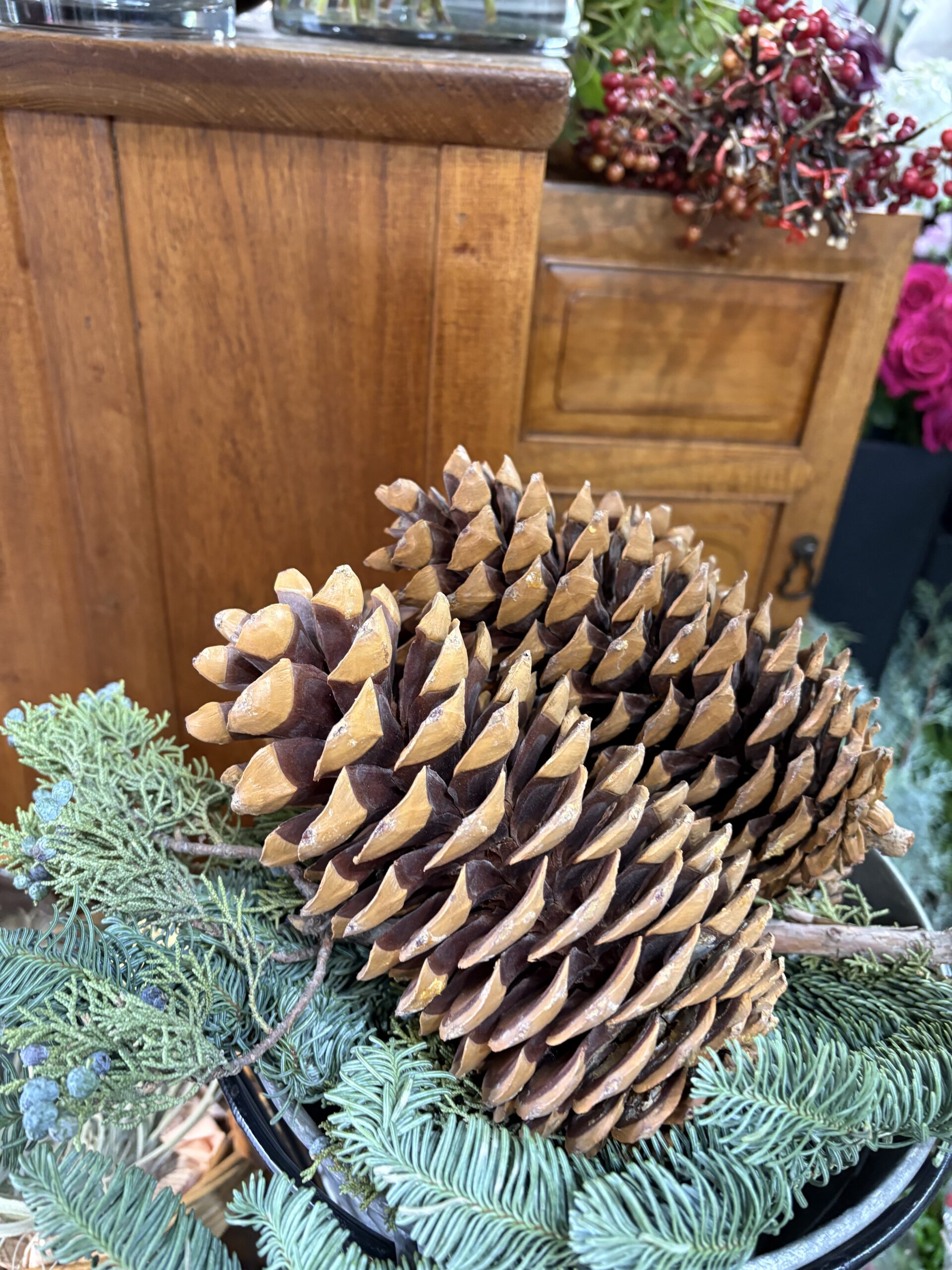 クリスマスに!オレゴンモミ枝、ポインセチア。冬の彩りに!華やかシクラメン。